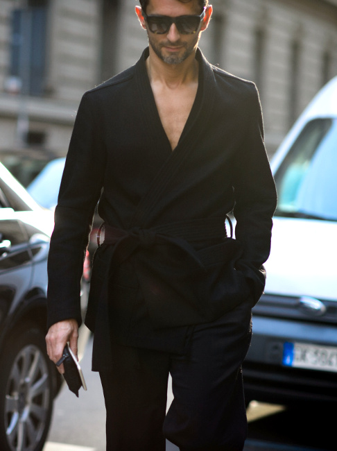 Quel charisme ! Stylé et sexy, l'italien comme je l'imagine. J'ai une préférence pour les styles les plus simples, où on remarque immédiatement la qualité des pièces. Je retiens le duo pardessus + longue écharpe en laine, et tous les tops portés à même la peau (pulls, sweatshirts, gilets).