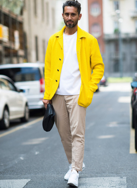 Offrir une dimension bohème à ses pardessus en leur associant une longue écharpe en grosse maille portée dénouée et ton sur ton (voir ici et là). Profiter de l'harmonie visuelle créée par les camaïeux de teintes pour jouer avec les textures et les imprimés (voir ici). Marier jaune, blanc et camel (voir ici et là). Associer gilet près du corps porté à même la peau, pantalon large en lin et baskets, le tout décliné dans des nuances de teintes proches (voir ici). Créer de subtils mélanges entre tailoring et pièces "farniente" (voir ici). Collectionner les manteaux hauts en couleur permettant de renouveler sans effort le duo jean/baskets (voir ici).