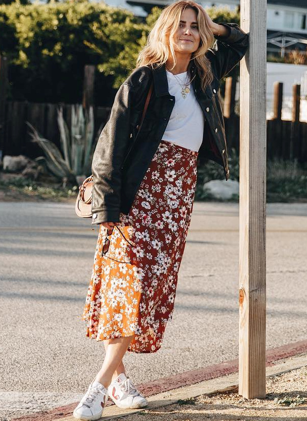 Par contre le duo robe fleurie + perfecto je n'en peux plus, j'ai l'impression de voir tout le monde habillée de cette façon de l'ado jusqu'à la quarantenaire, au perfecto je préfère le teddy ou le bomber.