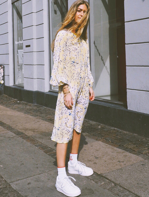 Glisser ses sweats shirts et autres polos à manches longues dans ses jeans (ou shorts) taille haute (voir ici, ici et là) (à réserver aux ados filiformes et aux femmes format Polly Pocket). Plonger avec volupté au sein des nineties en mariant veste en jean XL, pois blancs sur fond noir et Doc Martens (voir ici). Faire de la combinaison utilitaire son uniforme printanier (voir ici et là). Opter pour des robes longues fendues permettant de contredire leur pudeur apparente (voir ici).