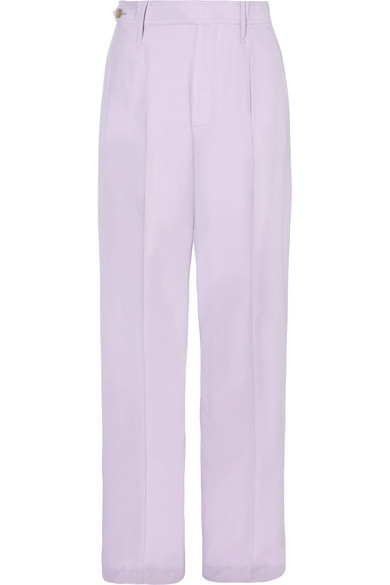 6h50 : Sur les conseils de son coach de vie, la pimpante quadra a décidé de consacrer sa journée à éradiquer une phobie qui commence à parasiter dangereusement ses pensées. Traumatisée enfant par le port d'une robe de petite fille d'honneur couleur lilas, cette agente immobilière "successful" a en effet beaucoup de mal à gérer la montée en puissance de cette teinte diluée au sein de l'air du temps... 7h20 : Elle se remémore les paroles de son gourou : "Traiter le mal par le mal". Autrement dit, dans son cas : surconsommer du lilas et serrer les dents. Elle y arrivera ! 8h : Elle pénètre vaillamment dans la chambre de son aînée et lui subtilise son tout nouveau sac lilas. Elle sent déjà la migraine poindre, mais résiste à l'envie de le reposer. 9h10 : Face à la vendeuse de chez Ladurée, elle effectue un effort surhumain en lui demandant de remplir son coffret exclusivement de macarons à la lavande. 11h : Chez Monoprix, elle troque son papier toilette Lotus Velours immaculé contre les rouleaux lilas de l'édition Collection et manque de s'évanouir. 13h : Au café de Flore, elle demande au serveur de la placer à côté de cette anglaise joyeusement excentrique arborant un tailleur lavande susceptible de lui provoquer une allergie cutanée. 16h : Elle jette un oeil prudent à son sac à main d'un jour et réalise avec étonnement que la migraine ne vient pas. Elle ouvre alors sa boîte de macarons et constate que le miracle continue : la vue des friandises lavande ne l'indispose plus, bien au contraire… 17h-20h : Le reformatage de son esprit a peut-être un peu trop bien fonctionné. Comme pour pallier un manque inconscient généré par l'absence de teintes lilas au sein de sa vie passée, elle passe la fin de son après-midi à dévaliser les boutiques de pièces susceptibles de composer avec "son" sac &Other Stories (c'est décidé, elle ne le rendra pas à sa fille) ces fameux camaïeux de coloris tellement en vogue actuellement (short Cacharel, jupe Maje, polo Acne Studio, blouse Marc Jacobs, robe The Row, pantalon Joseph…). Et dépense au passage l'équivalent de la généreuse commission perçue sur sa dernière vente d'appartement.