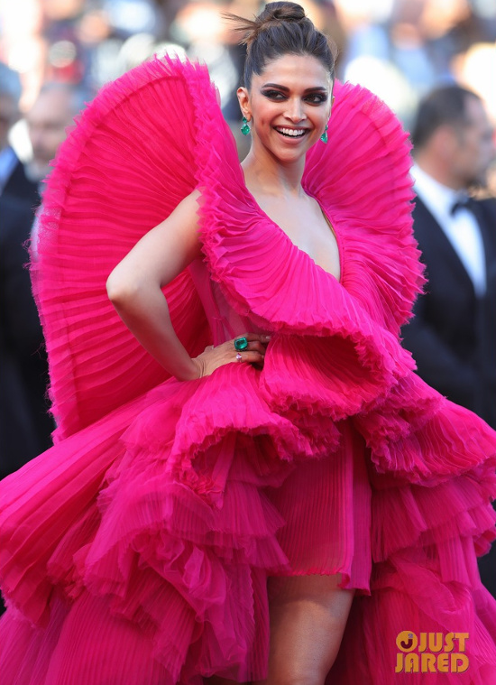 - Je devrais logiquement, vu mes goûts sobres, détester la toilette de Deepika Padukone, et pourtant, non, j'adore ! Et le pire, c'est que cette robe ultra présente n'arrive pas à éclipser sa beauté.