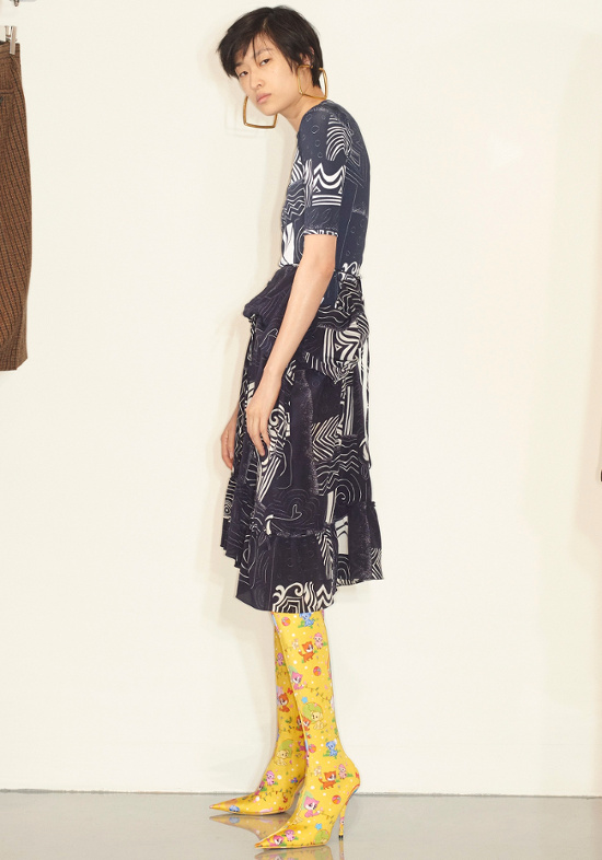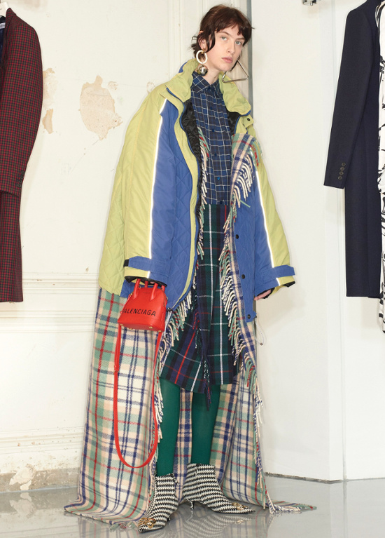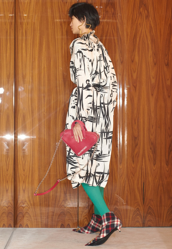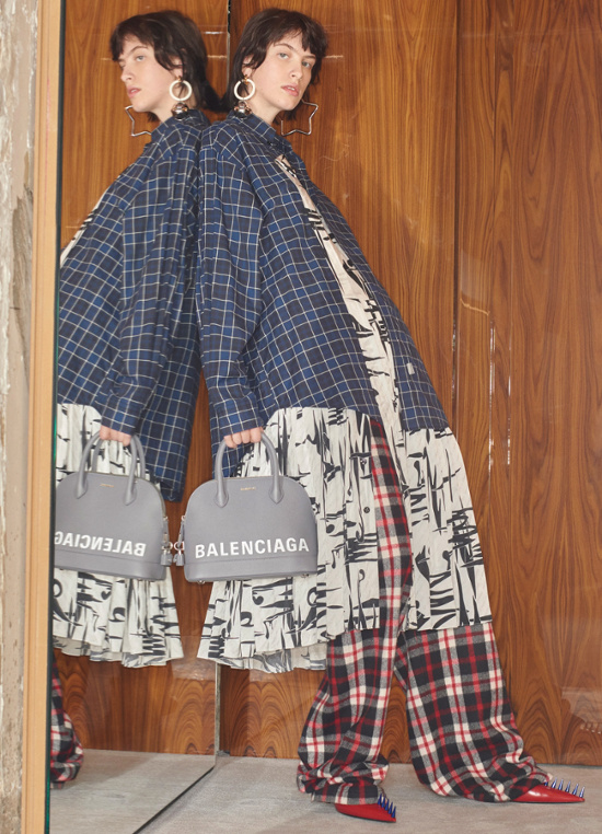 Fan éternelle de Kurt Cobain, la femme Balenciaga revendique le port de la chemise à carreaux grungy qu'elle superpose à ses atours de modeuse avant-gardiste (voir ici et là) et assume une passion irraisonnée pour les nouvelles proportions des costumes all-over de Demna Gvasalia (voir ici et là). Toujours en quête d'adéquation entre sa garde-robe et ses engagements sociaux, elle entretient un goût certain pour les looks et pièces évoquant ceux des sans-abris (voir ici, ici et là) avec qui elle discute régulièrement. Adepte du "normcore sous acide", cette Parisienne n'hésite par ailleurs pas à modifier son cabas à roulettes pour en faire une besace hautement edgy (voir ici et là) et à accompagner ses robes midi imprimées de bottines collants aux motifs kawaï.