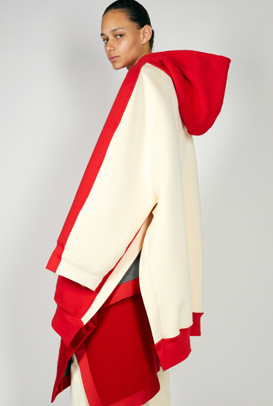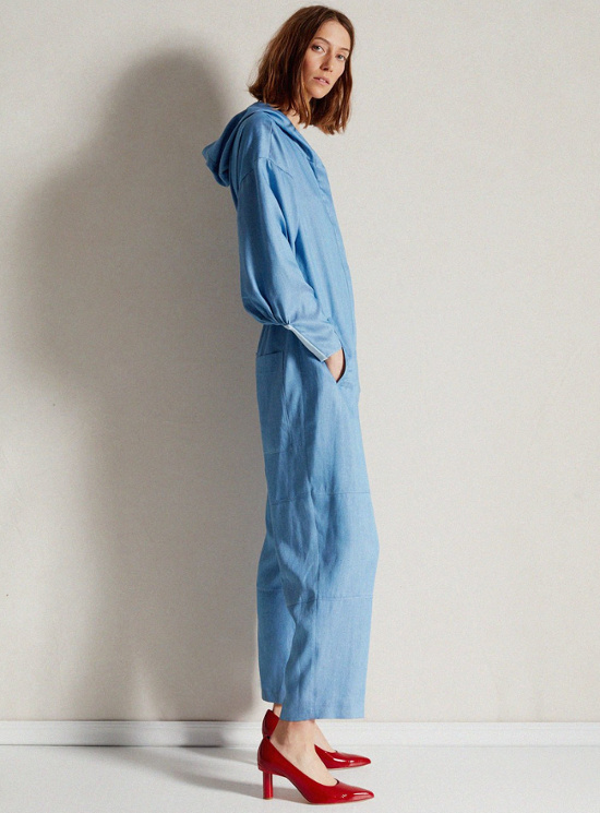 Ses tenues doudou hautement "sartorialisables" : un ensemble de babouchka sporty et une combinaison de pompiste à capuche.