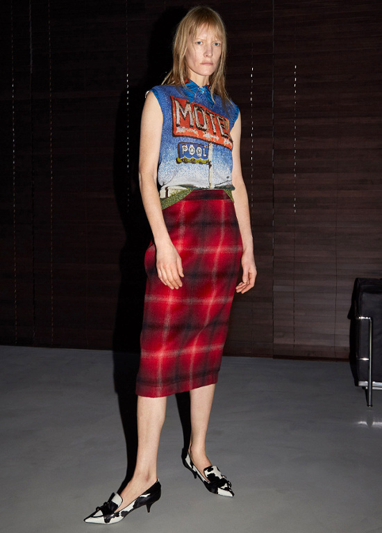 Un brin déboussolée par le récent départ de sa génitrice (Phoebe Philo) et par l'arrivée prochaine d'un père de substitution à la réputation sulfureuse (Hedi Slimane), la femme Céline ne sait plus vraiment à quel saint se vouer. Son vestiaire oscille ainsi entre références au travail de celle qui fit d'elle une créature délicieusement cérébrale (voir ici et là), partis pris conceptuels plus ou moins probants (voir ici), partis pris graphiques (voir ici et là) et tailoring.