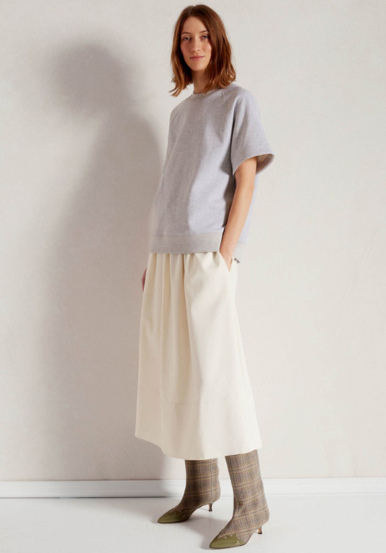 Son pêché mignon du moment ? : associer longueur 7/8 et bottes hautes (voir ici, ici et là).