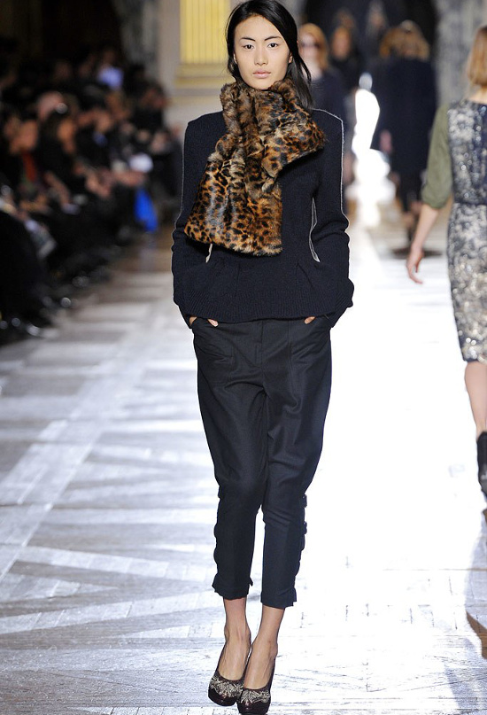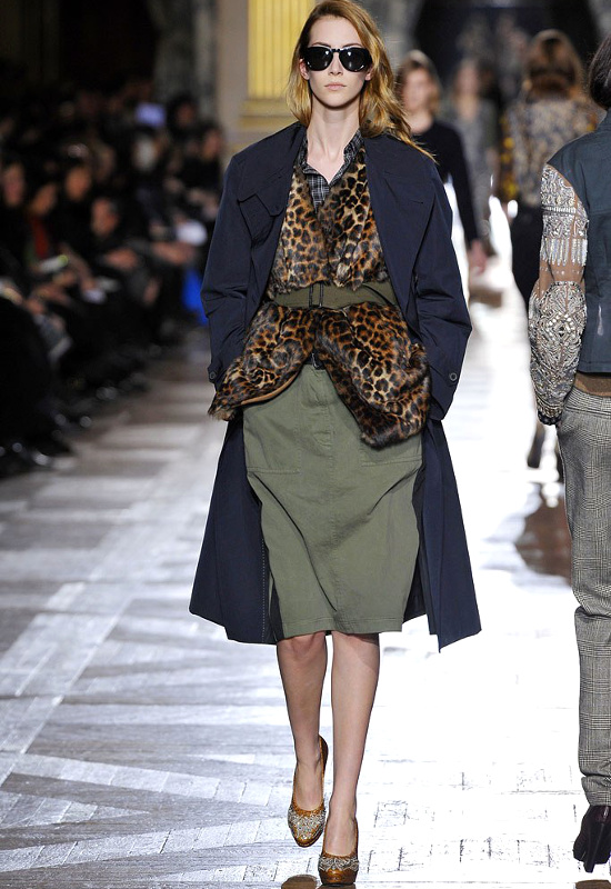 Alors que j'assimilais jusque-là le léopard au mieux à un glamour désuet, au pire à des atours vulgaires de mauvaise facture, Dries Van Noten livra en 2010 une collection qui bouleversa littéralement ma perception de celui-ci (voir ici et là). En mariant ce tacheté savane à des teintes masculines - bleu marine/kaki - et en jouant avec les codes casual et classiques, le créateur belge me fit en effet entrevoir le potentiel "exhausteur d'allure" de cet imprimé, ainsi que sa capacité à s'associer avec brio à ma grammaire stylistique (à savoir un mélange de volume boyish et de teintes telles que le bleu marine, le kaki ou le camel).