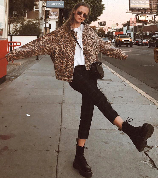 Grande fan de léopard, je n'arrive pas encore à l'assumer à fond! C'est seulement depuis l'année dernière que j'ai osé porter un jean léopard acheté depuis 5 ans! Emballée sur le moment comme une folle, il est ensuite resté au placard et puis paf! Le déclic! Porté retroussé 7/8ème, je l'adore! Pas trop moulant, un peu délavé, c'est l'amour fou! Hem... je viens d'écrire 5 lignes sur lui...J'ai aussi cherché des années les boots parfaites avec LE fameux imprimé parfait! Trouvé cet hiver, elles relèvent tous mes jeans des jours sans imagination! Bref, j'adore le léopard!