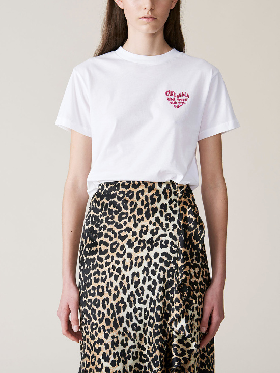 Cette saison, la griffe Ganni livre de quoi rendre légèrement neurasthéniques celles qui comme moi pensent que le coton de leurs tee-shirts blancs gagnerait à se voir "upgradé" au contact d'une jupe imprimé léopard ou d'une saharienne mouchetée.