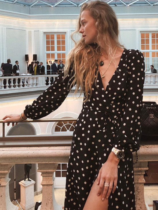 Je ne suis pas subjuguée non plus mais je tiens tout de même à souligner que ses cheveux au naturel et son maquillage toujours très léger voire absent lui confèrent une fraîcheur qui manque à beaucoup de ses copines instagrammeuses, ce qui lui donne un truc en plus bien que ses tenues ne soient pas des plus originales :) coup de cur quand même pour la robe fendue + montre masculine !