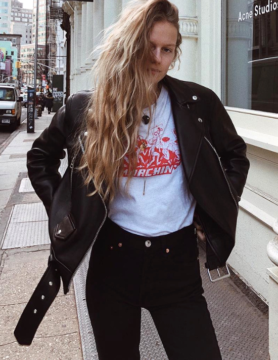 Dédramatiser une robe nuisette en lui mariant une paire de converses (voir ici). Préfèrer le jean droit 7/8 au jean flare pour accompagner ses blouses romantiques (voir ici). Télescoper pois chics et jean grunge (voir ici). Réchauffer une mini robe au creux d'un blouson en cuir un brin trop grand (voir ici). Agrémenter d'une montre masculine ses robes les plus féminines (voir ici). Jouer avec les codes du glamour grungy en mariant chemise léopard et short en jean (voir ici). Porter à l'envers un pull au profond col V (voir ici). Collectionner les tee-shirts funky/rétro/rock (voir ici, ici, ici, ici et là). Marier jupe midi à pois, tee-shirt blanc et blouson en jean clair (voir ici). Travailler l'imprimé léopard en mode cosy/nineties (voir ici).