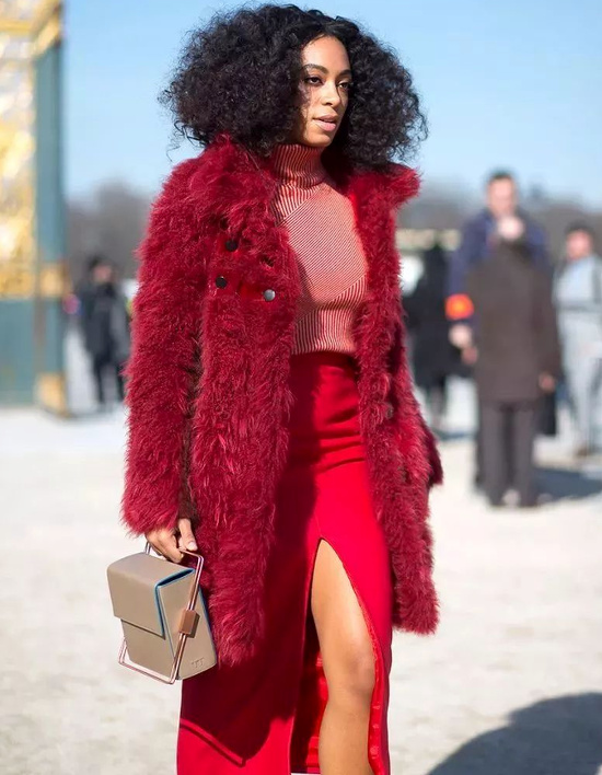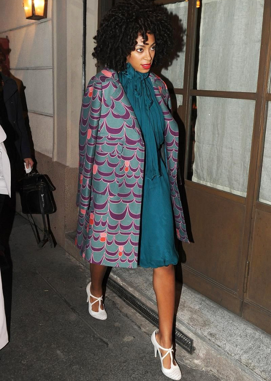 Solange Knowles sait tirer avantage de la couleur de sa carnation et de sa chevelure qu'elle change souvent pour son plus grand plaisir et le notre aussi. Elle a du style, davantage que sa sur d'ailleurs. Merci Lise !