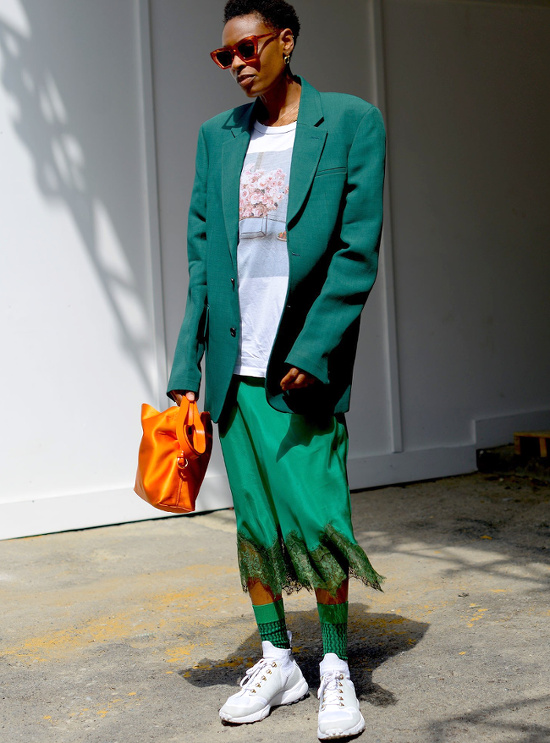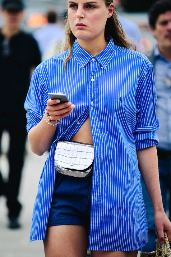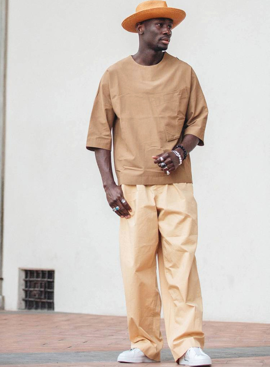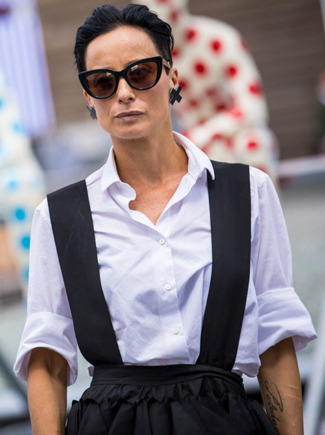 Réhausser ses tenues masculines noir et blanc via une paire de lunettes de soleil glamour (voir ici). Préférer au traditionnel panier en osier un modèle moins premier degré (voir ici). Déboutonner sa chemise non plus sur le haut, mais sur le bas (voir ici). Travailler son look tout en contrastes en associant blazer à carrure XL et jupe midi esprit lingerie (voir ici). Ne jamais oublier que les tenues les plus simples sont souvent celles qui nous mettent le plus en valeur (voir ici). Couvrir pour mieux dévoiler (voir ici). Troquer son tee-shirt blanc contre un marcel près du corps permettant de mettre en valeur l'ampleur d'un pantalon cargo kaki (voir ici). Télescoper chapeau de paille masculin et boucles d'oreilles chics, voire bourgeoises (voir ici).