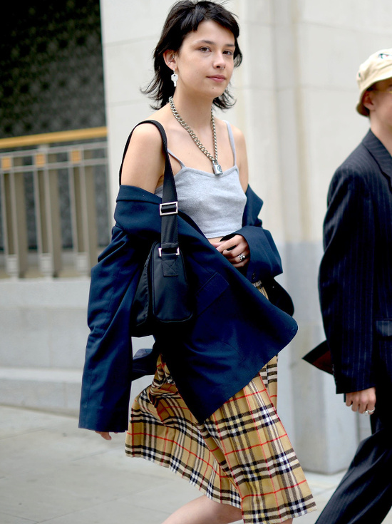 Après avoir été synonyme de mauvais goût au début des années 2000, le tartan Burberry tente aujourd'hui de se débarrasser de ses oripeaux "Chavs" en s'immisçant au sein de la garde-robe de la gent fashion. Dans la pratique, on n'hésitera pas à délaisser les pièces fortes telles que la chemisette et la jupe plissée au profit d'un accessoire venant subtilement twister la silhouette (voir ici, ici et là). Pile dans la tendance consistant à user et abuser des camaïeux de couleurs, le quatuor vanille/chamois/blanc/ocre se révèle idéal pour sophistiquer un look composé de pièces épurées (voir ici). Il semblerait que l'orange ait trouvé dans le kaki son compagnon estival idéal. On pensera à consommer ces derniers dans des matières légères et naturelles telles que le lin ou le voile de coton afin d'adoucir leur force chromatique (voir ici, ici et là). Le port du chapeau de paille à très larges bords séduit aussi bien la gent masculine que féminine. Il faut dire qu'entre protection UV maximale et capacité à protéger l'espace vital de son propriétaire, cet accessoire ne manque pas d'avantages… (voir ici)
