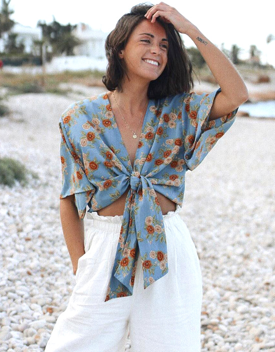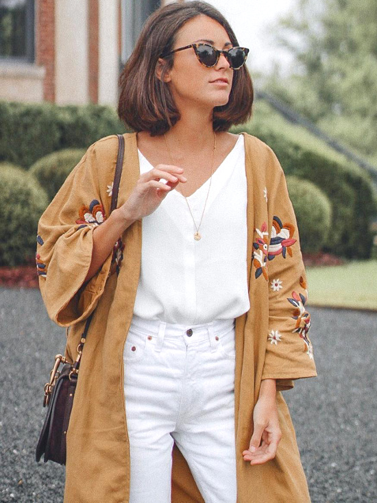 C'est au sein de l'offre de cette marque espagnole aux créations éthiques et finement bohèmes que Miren Alós déniche ses kimonos brodés aux allures de merveilleux trenchs estivaux.