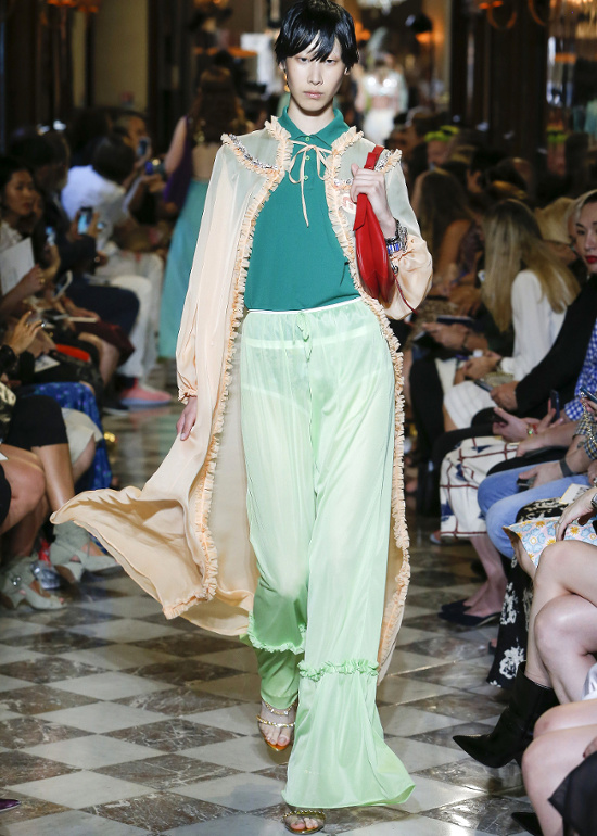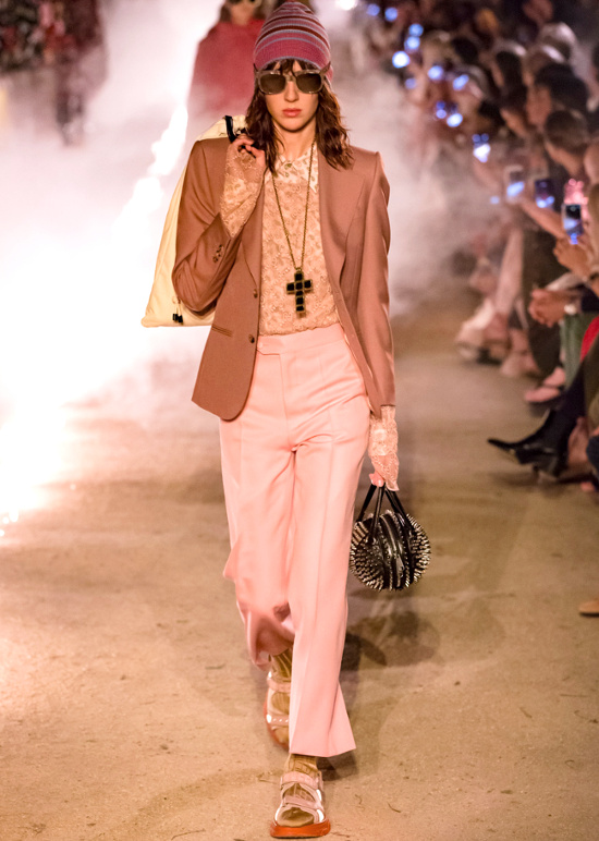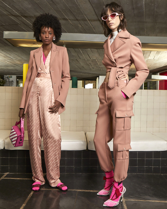 Après avoir audacieusement côtoyé le rouge, le rose se travaille désormais en camaïeu. Chez Isabel Marant, rose Barbie et rose Malabar osent ainsi le duo et patinent leur dégaine girly en misant sur un imprimé bûcheron et un velours côtelé. De leur côté, les filles Off White réveillent le rose thé de leur ensemble à coup de rose Stabilo, tandis que la créatrice Ulla Johnson joue la subtilité en mariant rose layette et rose orangé. Enfin, on note qu'Alessandro Michele déride avec brio le duo rose poussière/vieux rose au contact d'un lumineux rose dragée.
