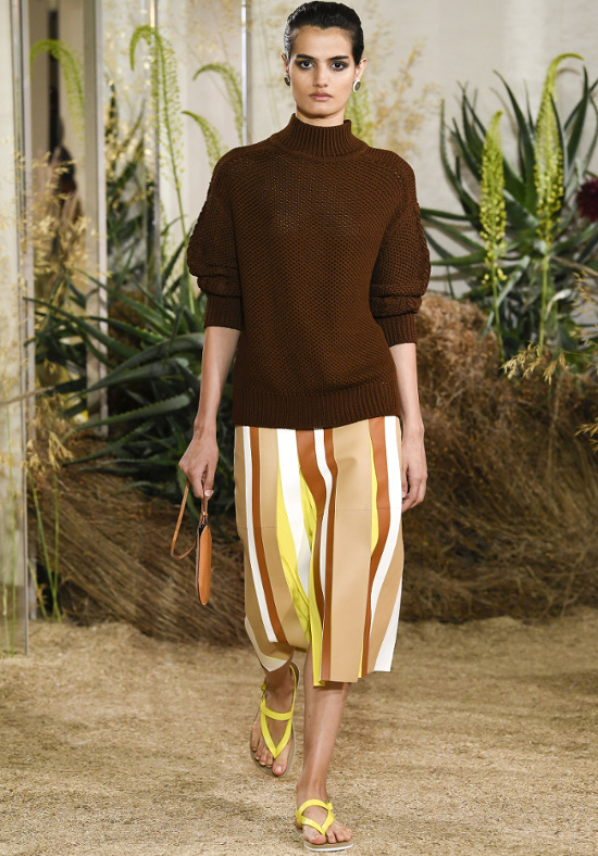 Chaleureux et légèrement sportswear, le trio marron/blanc/jaune fleure bon les seventies. Et si ce combo de teintes frôle la citation lorsqu'il est consommé en rayures horizontales (Miu Miu), c'est lorsqu'il se voit travaillé en color-block (Phillip Lim) ou en rayures verticales que ce combo de teintes livre son plein potentiel. On retient par ailleurs que le jaune citron se substituera parfaitement au jaune moutarde (Hermès) et insufflera un dynamisme inattendu aux deux autres teintes du trio.