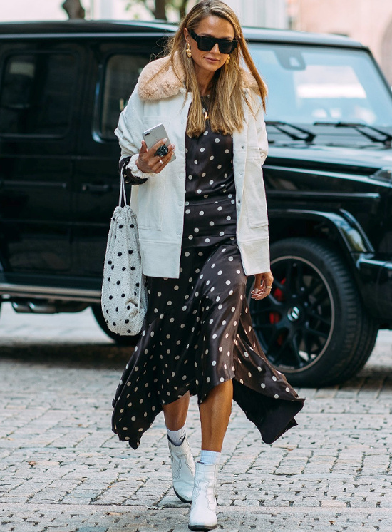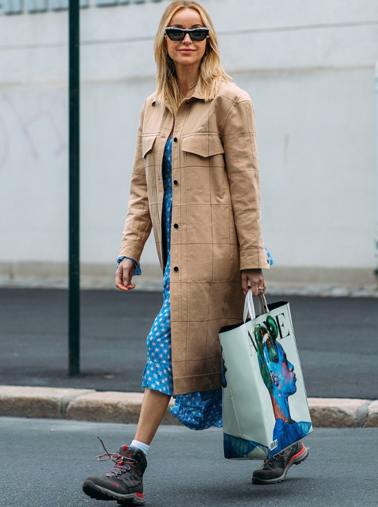 Troquer ses tennis blanches contre une paire de baskets de montagne, et ne pas hésiter à les porter à contre-emploi (voir ici). Mixer les pièces à pois en privilégiant le combo robe/sac (voir ici). Offrir une chance au cycliste de passer inaperçu en le portant partiellement dissimulé sous une robe en dentelle (voir ici). Dompter le volume oversize de son costume en le portant à même la peau et en lui associant une paire de talons hauts perchés (voir ici et là). Associer jaune, grège et camel (voir ici). Arborer le tartan Burberry en dépit du souvenir encore trop présent de son époque "chav" (voir ici, ici et là). Continuer à faire la part belle aux imprimés léopard (voir ici). Porter une jupe midi sur une longue slip dress (voir ici).