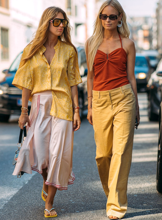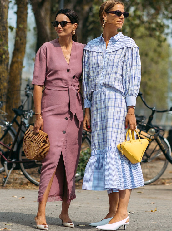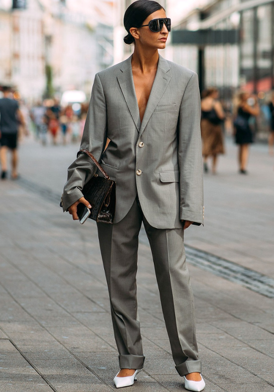 A quelques rares exceptions: la jeune femme qui porte la robe portefeuille en cuir , celle qui porte une jupe midi sur une longue slip dress et celles qui portent des tailleurs oversize avec des talons le reste est vraiment déplorable.