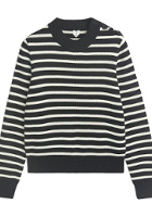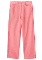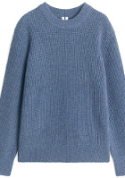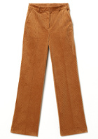 - le pantalon en velours noisette associé au pull bleu glacier, on en mangerait;