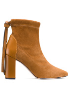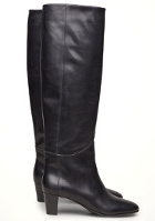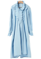 La robe se portera le col relevé et généreusement déboutonnée sur le haut, de manière à laisser entrevoir le collier. On roulottera les manches du blazer. Une fine paire de chaussettes bleu marine pourra dépasser légèrement des boots.