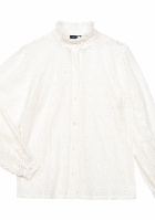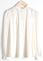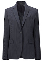 On roulottera le pantalon afin de mettre en valeur la cheville nue. On glissera la blouse sur le devant du pantalon. On roulottera légèrement les manches de la veste, de manière à laisser apparaître les poignets de la blouse.