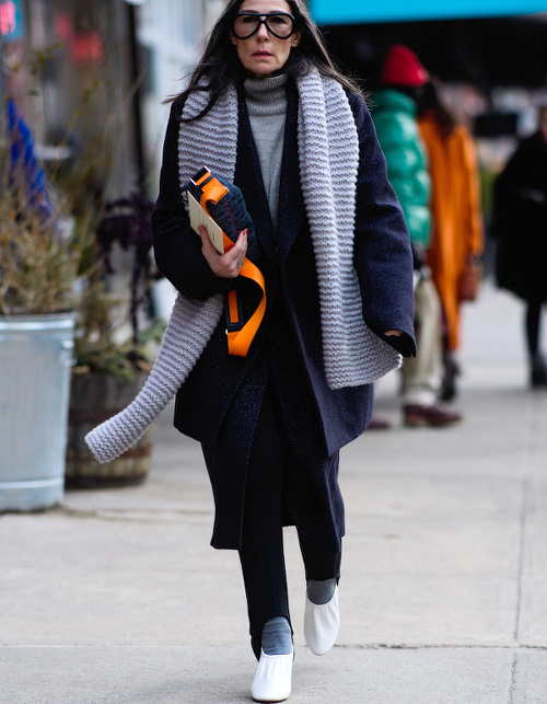 J'adore le style de cette nana mais à chaque fois, je me dis "mais pourquoi diantre ces lunettes ?" :-) C'est la parfaite incarnation de la modeuse qui a du style - Parce que bien évidement qu'elle suit les tendances, mais sa personnalité étant plus forte, on voit d'abord la femme avant de voir les fringues et ça c'est plutôt très très rare.