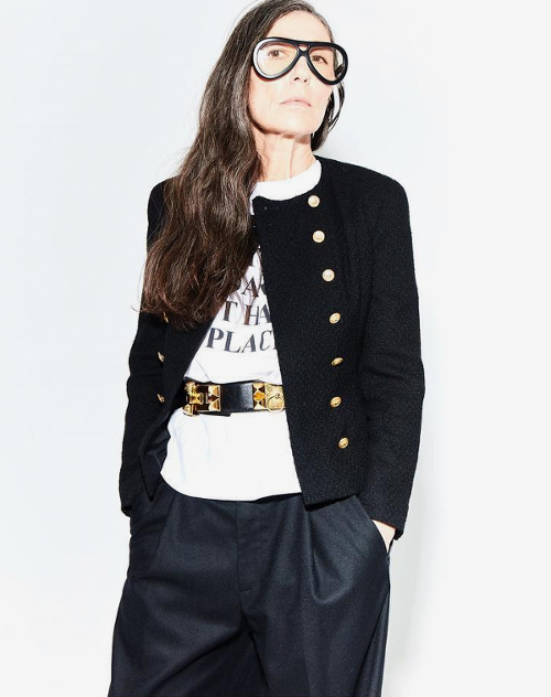 La bourgeoise rock, ( elle a une fortune en fringues sur le dos). J'adore .En revanche mon obsession tout au long de l'article : lui retirer ses lunettes pour dévoiler les très fins de son visage.
