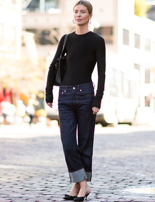 Lors d'une soirée très chic, le body lingerie noir pourra se porter comme un top à part entière avec un pantalon de costume large à pinces. Un body en dentelle ou en très fine résille permettra de sensualiser un gros pull légèrement cropped en apparaissant dans l'interstice laissé entre le bas et le pull. Le body à manches longues en coton stretch permettra d'équilibrer une jupe midi volumineuse. Les body au dos nu rond injecteront une sensualité casual à un jean mom ou à un jean boyfriend. L'association body ton sur ton + pièce ample permettra de créer des looks monochromes efficaces. Le body sobre sera mis en valeur par jean boyfriend porté légèrement taille basse et roulotté sur la cheville, le tout "upgradé" par une paire de kitten heels (voir ici). Les body dotés d'un élégant décolleté se glisseront avec à propos sous les blazers oversize du moment. Le body tee-shirt composera un duo parfait avec le jean taille haute. Les body les plus près du corps apprécieront de se voir portés avec des bas à la taille froncée (voir ici). Le body imprimé offrira une caution féminine au trio jean droit 7/8 + derbies + épais cardigan. Le body esprit sous-pull permettra d'apaiser une mini-jupe droite. Une fois associé à un jean droit, le body ultra glamour pourra s'arborer de jour (voir ici). Le body beige ultra fin composera avec un long trench beige pâle un tandem frais et urbain (voir ici). Le body shorty sera l'allié des robes totalement translucides (à réserver à celles évoluant dans les hautes sphères mondaines). Le body translucide à manches longues viendra pimenter la dégaine d'un simple bustier (Dries Van Noten).