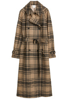 L'idée ici est de réchauffer une robe délicate dans la douceur chaleureuse d'un trench à carreaux. On pourra glisser un très fin sous-pull sous la robe. Une coiffure dégageant bien le visage est recommandée afin de mettre en valeur les boucles d'oreilles.