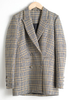 Le blazer se porte ouvert, les manches légèrement roulottées. On fera légèrement blouser le pull dans la jupe. Une tresse sur le côté fonctionnera bien avec le bonnet.