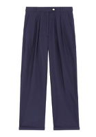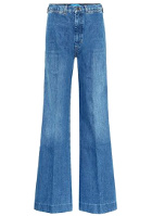 L'idée ici est de miser sur un camaïeu de bleus twisté via divers imprimés. La blouse se glissera sur le devant du pantalon . On pourra compléter le look par un bonnet bleu ciel et de larges boucles d'oreilles dorées. Pour dynamiser ce look, on pense à lui associer un sac vitaminé.