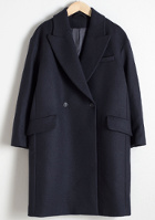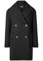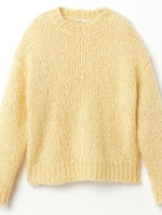 On pense à roulotter légèrement les manches du manteau, de manière à laisser apparaître les poignets du pull. On n'oubliera pas de relever le col du manteau. Un pull orangé pourra au besoin remplacer son homologue jaune. Un bonnet noir en maille épaisse ou une casquette imprimé pied-de-poule seront des alternatives possibles au modèle proposé ici.