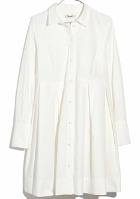 La robe chemise se porte sous le pull liquette. On veillera à faire dépasser du pull les poignets de la robe et à porter le col de celle-ci relevé. Une queue de cheval permettra d'accentuer le dynamisme de ce look.