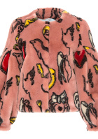 L'idée est ici d'apaiser le style sexy des cuissardes et de jouer sur la rencontre de volumes contrastés. L'ajout d'une broche rouge sur la robe rose permettra de dynamiser celle-ci. Le col de la robe se portera déroulé.