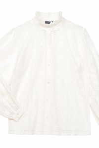 On glissera la chemise sous le pull, en veillant à bien faire ressortir les volants du col et des poignets. On pourra porter ces 3 pièces avec un jean droit brut 7/8 et une paire d'escarpins noirs ou avec une mini-jupe en cuir noir et une paire de baskets montantes bordeaux.