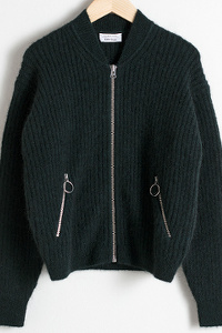 On portera le gilet dézippé de moitié. On n'hésitera pas à se faire un chignon haut et serré, de manière à mettre en valeur les boucles d'oreilles et à bousculer l'ADN cosy du gilet. On pourra accompagner ce look d'un jean flare brut ou d'une jupe mini ligne A blanche et d'une paire de hautes bottes caramel.