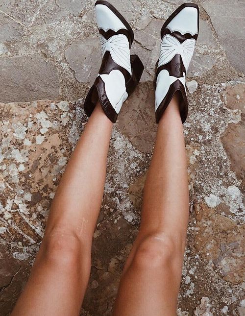 Contrairement à certaines de leurs consoeurs manquant de second degré et se prenant trop au sérieux, les santiags imaginées par Ditte Reffstrup fleurent bon l'enfance. Comme si ces dernières étaient en réalité la version adulte des boots que l'on rêvait fillette de chausser pour faire rugir notre tricycle sur le trottoir...