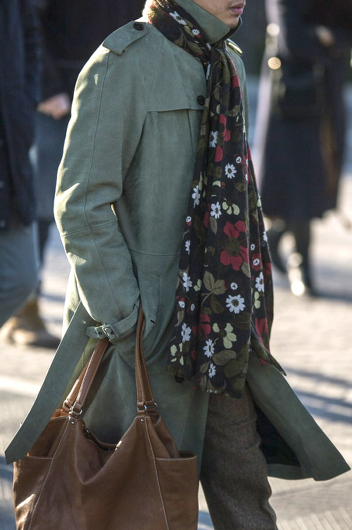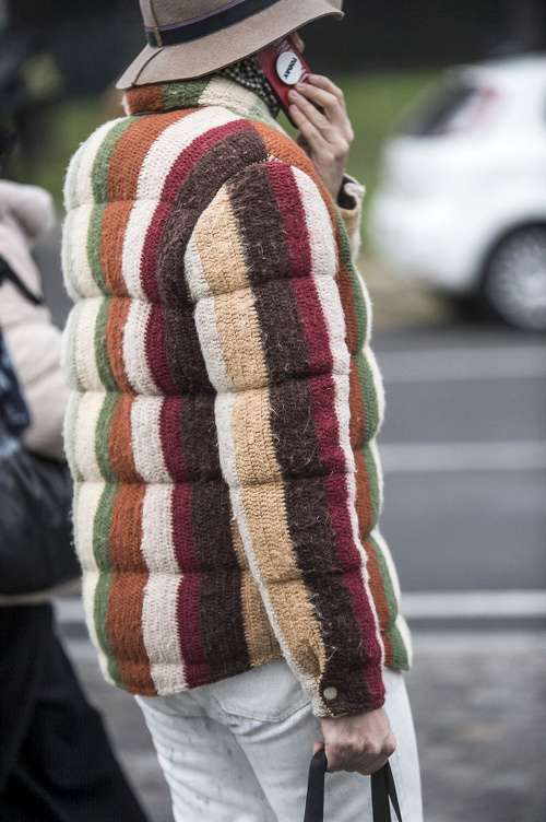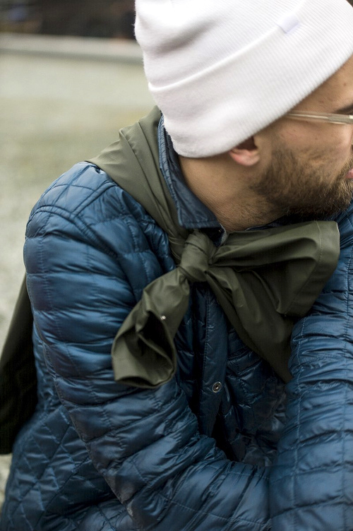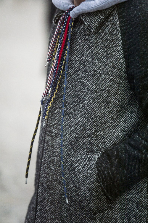 Glisser un sweat de teinte inattendue sous un pardessus aux sages coloris automnaux (voir ici). Démilitariser les combos bleu marine/kaki et marron/kaki en y insérant une pièce imprimée (voir ici, ici et là). Ceinturer son trench avec un élément insolite (voir ici). Marier pull ocre mousseux, foulard marron mouché de blanc et tee-shirt blanc (voir ici). Opter pour une doudoune à la fantaisie subtilement expérimentale (voir ici, ici et là). Glisser dans l'ourlet de sa capuche de sweat différentes cordelettes d'escalade et autres lacets (voir ici). Faire de son K-way un élément décoratif à part entière (voir ici). Mixer les imprimés évoluant dans la même gamme chromatique (voir ici).