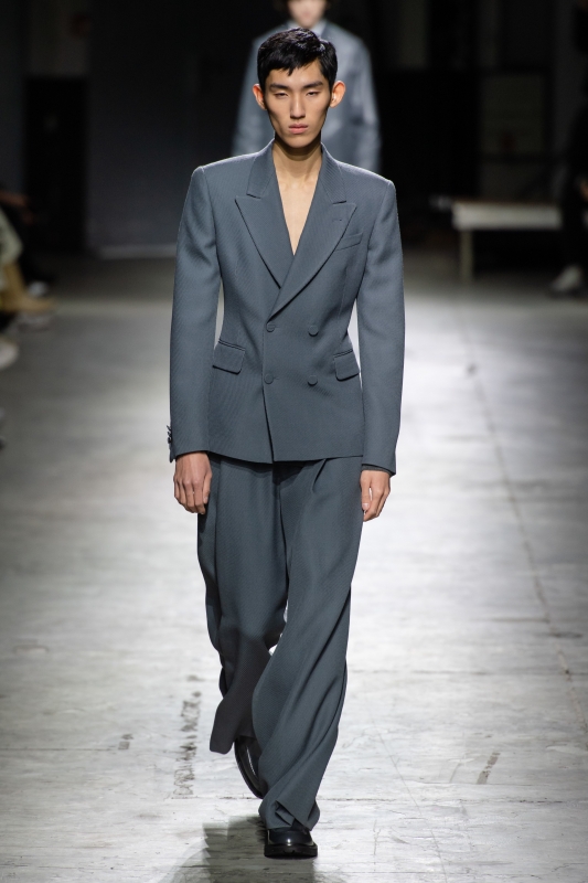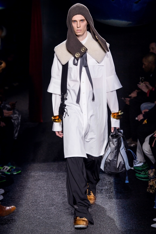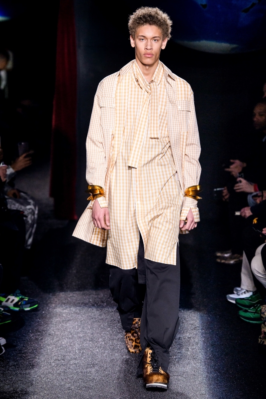 Entre variation SM autour du hijab, référence aux SA et look pour ado en perdition hésitant entre la soirée pyjama régressive et le shooting de masse (voir ici, ici et là), Demna Gvasalia a déclaré s'être immergé au coeur du darknet pour trouver l'inspiration de sa dernière collection… Les chapeaux méduses aux allures de casque de guerre imaginés par Raf Simons brillent par leur total inesthétisme (voir ici). L'emplacement des "éclaboussures luxueuses" des chemises Louis Vuitton évoque malheureusement plus les conséquences d'un mauvais mélange d'alcool qu'une constellation (voir ici). Aux jeunes éphèbes androgynes ayant trusté les podiums lors de cette fashion week parisienne, Junya Watanabe préféra un casting mettant en scène des hommes aux âges variés dont le sex appeal n'a rien à envier à leurs jeunes collègues (voir ici, ici et là)...