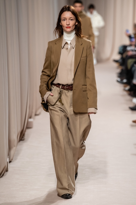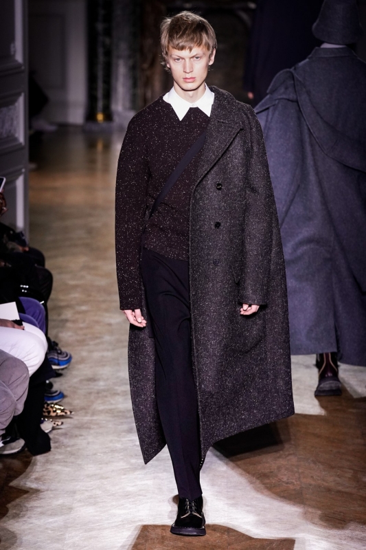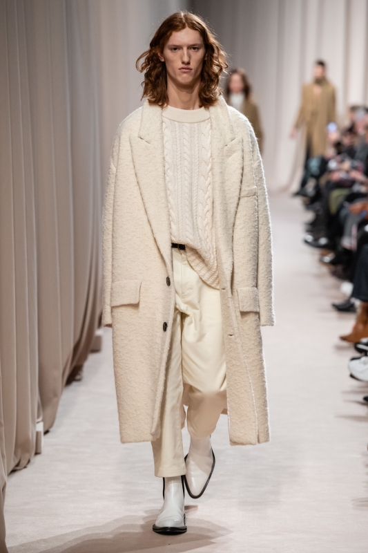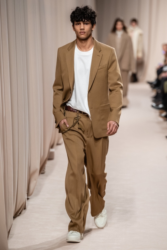 Marier ample pull et jupe-culotte (ou pantalon 7/8) taillée dans un tissu masculin (Dries Van Noten, Valentino). Se dénicher un costume qui, en ceignant la taille et en laissant la jambe floue, dessinera une silhouette élégamment nonchalante (Dries Van Noten, Dries Van Noten). Réchauffer sa silhouette en ceinturant taille haute un plaid porté en étole sur les épaules (Dries Van Noten). Structurer ses longs gilets en les portant croisés et ceinturés (Dries Van Noten). Associer vieux rose, bordeaux et marron (Lemaire). Réhausser l'allure d'un total look blanc en y télescopant diverses textures (Ami). Troquer son slim contre un pantalon large marqué d'un pli sur le devant de la jambe (Ami). User et abuser du duo blanc/café au lait (Ami). Opter pour le trio longueur sous genou/longueur 7/8/hauteur cheville (Ami). Travailler les camaïeux de beiges en mélangeant énergie sportswear et décontraction chaleureuse (Ami, Ami). Twister la nature masculine d'une veste ou d'un pardessus à petits carreaux au contact d'un bijou minimaliste emprisonnant des fleurs séchées (Acne). Marier bleu cobalt et chocolat au lait (Acne).