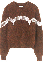 Le foulard se nouera en bandeau dans les cheveux retenus en un chignon bas. Le jean devra être choisi dans une longueur de jambe lui permettant de se casser généreusement sur la basket. La broche s'épinglera sur le pull. Le col de la veste se portera relevé.
