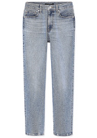 Le jean se portera roulotté sur la cheville. Le tee-shirt se glissera proprement dans le jean. Une queue de cheval haute prolongera le dynamisme apporté par les baskets.
