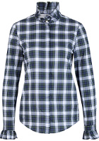 La chemise se glissera sur le devant du pantalon. Le sac en osier tressé apportera une petite note printanière à ce look d'hiver. Aux chapeaux et autres turbans pouvant potentiellement rendre ce look un brin caricatural, on préférera un sobre bonnet bleu marine.