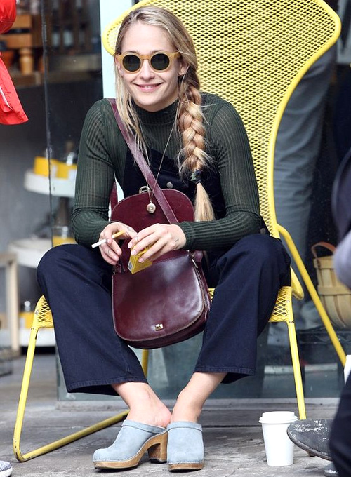 User et abuser des coiffures féminines (voir ici). Rehausser un look à dominante bleu indigo au contact d'un sac de teinte chamois (voir ici). Marier bleu marine, bordeaux, vert forêt et touche de jaune mat (voir ici). Rehausser un look grand froid via un trait de rouge à lèvres (voir ici). Collectionner les robes vintage évoquant tour à tour les années 40, la période hippie et les nineties (voir ici, ici et là). Porter de la lingerie sexy sous son bleu de travail (voir ici).