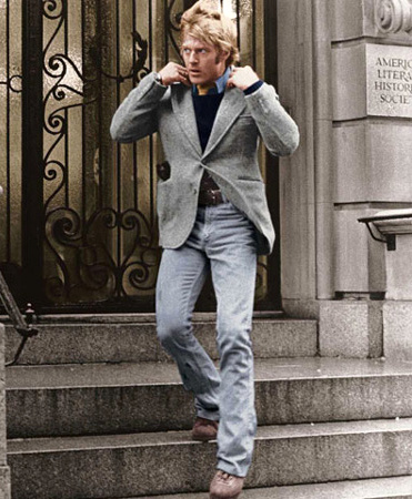 Ça brûle les yeux. Mais en bien. Merci, Lise. Je me rappelle très exactement la première fois que j'ai vu Les Trois Jours du Condor, qui reste un de mes films préférés de tous les temps (intelligence et responsabilité morale comme Pollack savait si bien faire, mais aussi sublimité de la mise en scène et des acteurs) et l'espèce de choc de Redford en veste en tweed et en jean, puis en caban. Non mais comment il porte le caban, cet homme! Alors qu'avant, il ne me faisait ni chaud ni froid, le Robert (je l'ai vu pour la première fois dans l'Arnaque, et j'ai été tellement éblouie par la beauté interstellaire de Newman que je l'avais à peine calculé).