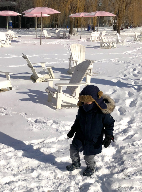 Lorsque le sol se couvre de neige, il n'est pas rare de voir les chiens arborer deux paires de petits chaussons, allant du modèle technique antidérapant à la mignonnerie fleurant bon la femme-enfant sous ecstasy, en passant par la double paire léopard pour apprentie fashionista. Entendre le bruit sourd des flocons s'écrasant sous la semelle de mes Timberland me procure invariablement l'étrange sensation de marcher sur des platebandes de barbe à papa. Peu importe si les bourrasques de neige font rage et si le thermomètre flirte avec les -15 degrés Celsius : nous continuons de croiser de temps à autre des jeunes femmes asiatiques les jambes nues dans leurs boots Gucci fourrées… D'où viennent ces filles, où vont-elles ? Leur trajet ne peut excéder une dizaine de minutes (et encore), sous peine de s'exposer à des gelures. Mystère... 26 décembre 2018, Rouge National Urban Park. Seuls au sein d'une nature figée par le froid, nous débouchons dans une immense clairière enneigée. Le silence dense presque palpable qui enveloppe l'étendue opaline encore vierge de toute trace de pas me procure une sensation quasi mystique. Lorsque les chutes de neige ont été généreuses, nous n'attendons qu'une chose : nous saisir de nos luges pour aller dévaler les pentes d'un petit parc situé à quelques "blocs" de chez nous. Sur le chemin du retour, le décalage entre notre dégaine joyeusement ébouriffée et celles des riches clientes des enseignes de luxe bordant notre avenue me fait toujours sourire.