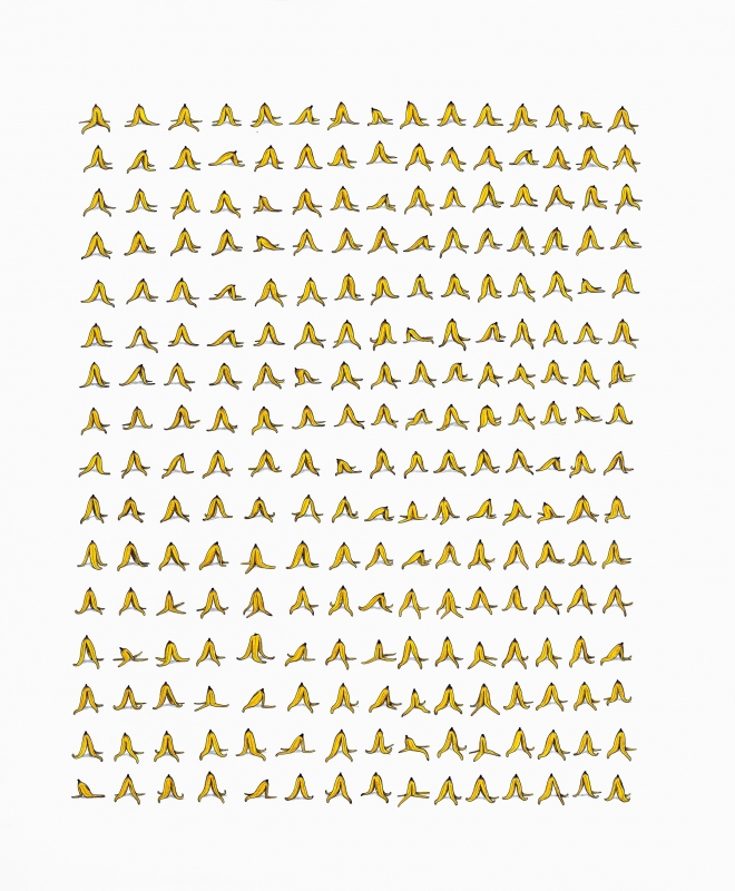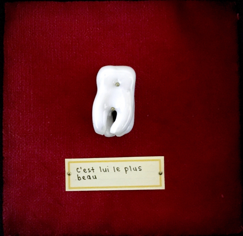 Si son jeu d'actrice m'a souvent convaincue et si ses facéties de Miss Météo décalée m'ont fréquemment faites sourire, ce sont néanmoins ses créations faussement naïves et son trait minutieux qui me séduisent le plus chez Charlotte Le Bon. Un trait fin, précis jusqu'à l'obsession, qu'elle a développé lors des interminables heures d'attente auxquelles l'a exposé son ancien métier de mannequin et qui sert depuis une oeuvre insolite où l'humour grinçant le dispute tantôt à la poésie, tantôt à la grivoiserie (voir ici). Que ce soit lorsqu'elle file l'image du cornichon (voir ici et là) ou quand elle multiplie les minuscules peaux de banane, on sent que l'artiste développe ses obsessions les plus farfelues avec un plaisir imperméable au jugement des autres. J'aime particulièrement son clin d'oeil à Marcel Duchamp lorsqu'elle encadre le crayon lui ayant servi à dessiner ses lunes, sa série de 32 dents en porcelaine minutieusement modelées et présentées tel un papillon dans une petite boîte de verre avec pour légende un souvenir de l'artiste (voir ici et là), les cratères lunaires dont la précision dénote d'une patience infinie, mais aussi sa série street-art "Catch the moon" dont l'audace Saint-Exupérienne ne peut qu'émouvoir (voir ici, ici et là). Pour finir, on retiendra cette phrase de la jeune femme : "Mal dessiner n'existe pas". Un mantra que l'on devrait accrocher dans toutes les classes : seule compte en effet l'envie de dessiner…