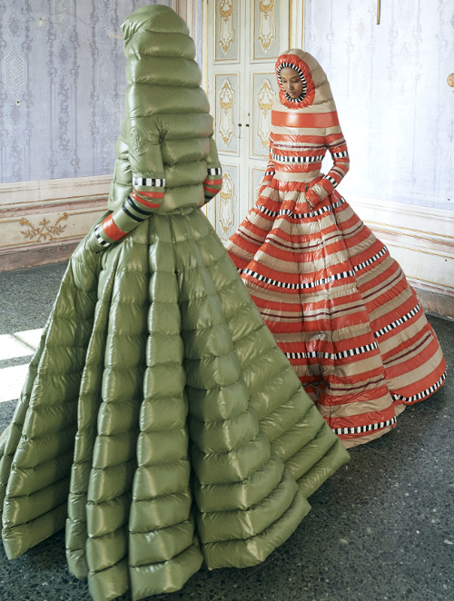 La collection Moncler apporte une touche de "pop art" avec de la couleur et des robes bien gonflées. Le concept des "robes doudounnes" est très drôle.