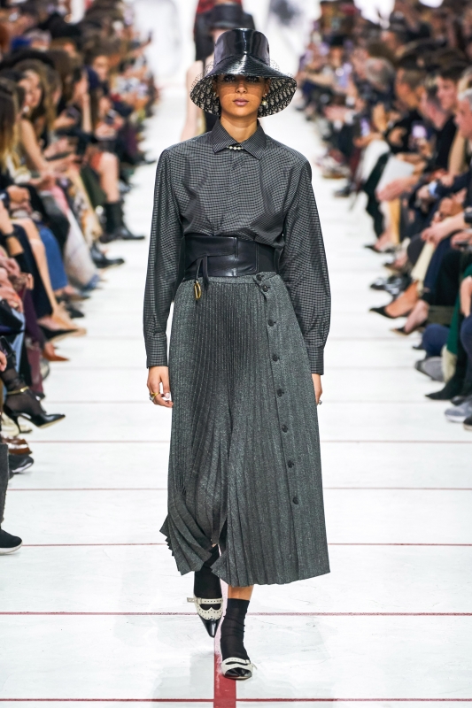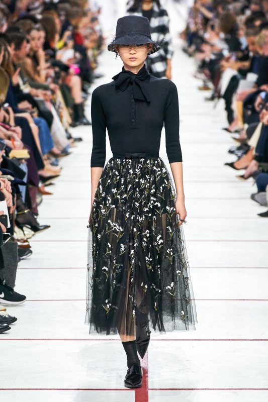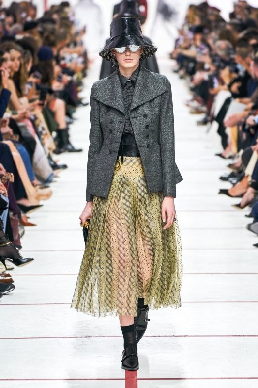 En matière de mode, la logorrhée stylistique est rarement bon signe ; cela signifie généralement soit que le designer est incapable d'éditer ses idées, soit qu'il essaie de combler par la quantité un manque de qualité créative. Dans les deux cas, le résultat se matérialise sous la forme d'un défilé fleuve enchaînant les idées plus ou moins pertinentes, faisant se succéder des silhouettes prometteuses et d'autres plus discutables et juxtaposant les inspirations sans réellement essayer d'en tirer le meilleur. Or, c'est précisément ce que l'on ressent face au dernier défilé Dior. Il est vrai qu'entre clins d'oeil aux Teddy Girls, pièces sans grande valeur ajoutée, gimmick féministe marketing, choix maladroits de volumes ou de matières (voir ici, ici, ici et là), bob à voilette et variations autour des sublimes mais un brin redondants jupons chers à la créatrice (voir ici, ici et là), Maria Grazia Chiuri ne prend aucun risque. À part peut-être celui de nous ennuyer...